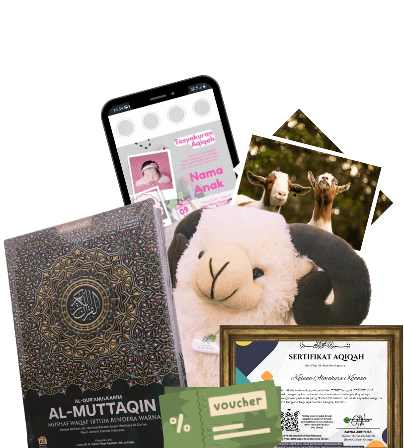Gratis undangan digital, boneka, sertifikat Aqiqah, Al-Quran, voucher ongkir 50rb dan dokumentasi penyembelihan